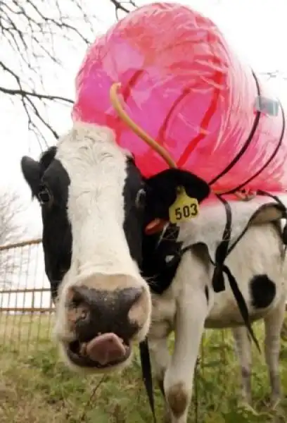 Теперь ни одна корова в Аргентине не будет пердеть вхолостую. Специальный рюкзак способен собрать до 300 литров ценного газа в день благодаря трубке, вставленной корове в задницу. Количества готового топлива, полученного в результате переработки этого сырья, хватит на сутки езды в легковом автомобиле.