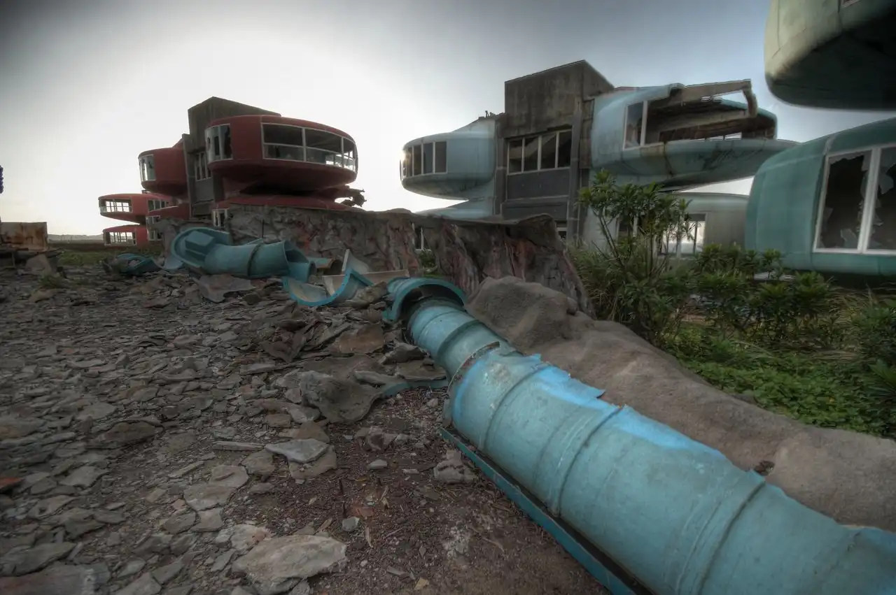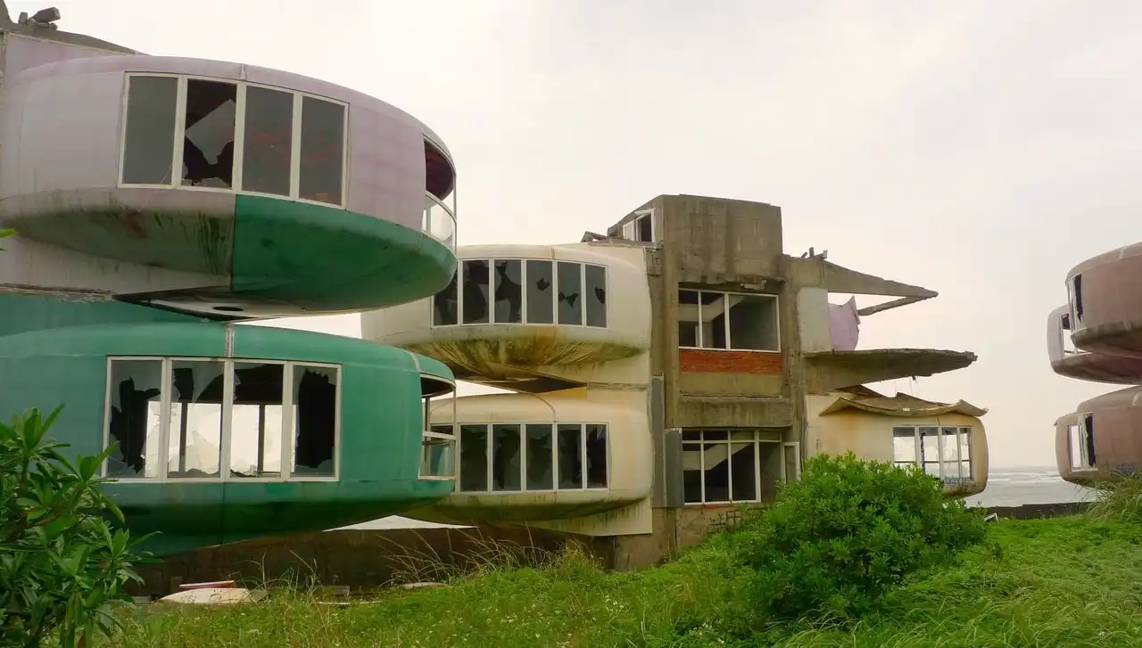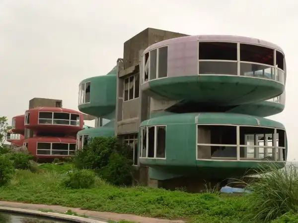 Дома-НЛО — это группа причудливых, ярких, ветхих зданий, которые когда-то должны были стать курортным поселком, но власти города Тайбэй решили снести их.
