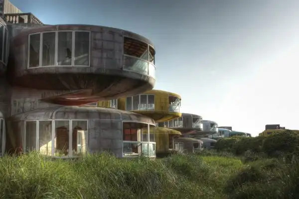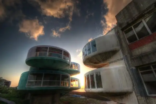 Таинственный город Sanzhi Pod, или дома-НЛО (названные так благодаря своей форме), был заброшенным курортным комплексом в Тайване. Он предназначался для отдыха американских военнослужащих, проходящих службу в Восточной Азии.