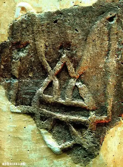 Таким образом Хахарская тамга есть не что иное как ПЕЧАТЬ. Так же встречается упоминание его как ТРЕЗУБЕЦ Ярослава Новгородского, но суть та же, самые первые упомининия о изображении принадлжат хазарам.