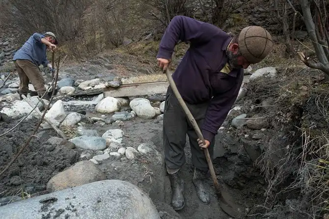 Процесс продолжается ещё час. Мужики поочерёдно копают яму и кидают песок в желоб. Пока один копает, второй или смотрит, или расчищает у желоба завалы. Процесс мог бы продолжаться и дольше, но Эмо говорит, что ему надо будет скоро идти домой, следить за ребёнком, все остальные уедут.