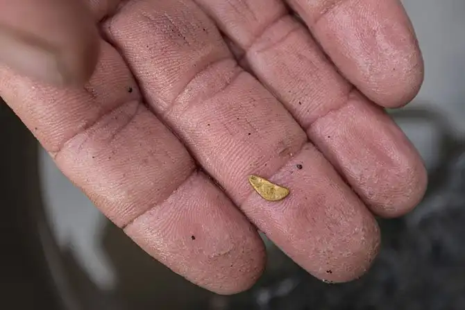 А вот и небольшой самородок, тот самый, блеск которого видели мужики.
