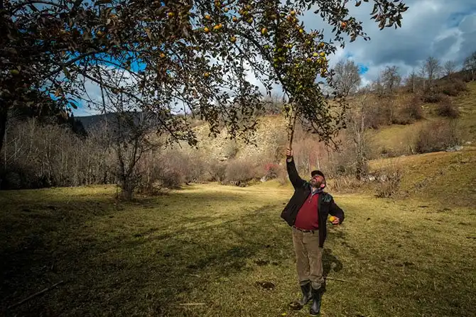 По дороге мы встречаем, со слов Эмо, шикарную яблоню, и не грех, как он говорит, этим воспользоваться.