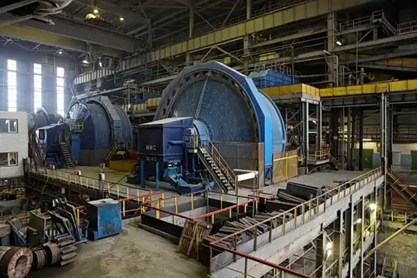 Начальная стадия обогащения алмазной руды выглядит так же, как и для любого другого минерала. Изначально на фабрику попадают большие куски породы размером до нескольких метров. После крупного дробления в щековых или конусных дробилках руда подается на мельницы мокрого самоизмельчения (на фото), где с использованием воды фрагменты породы размером до 1,5 м дробятся до размера 0,5 м и менее.