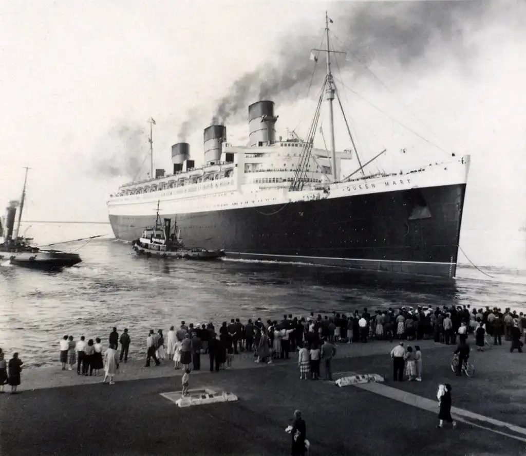 Трансатлантический лайнер «Куин Мэри» (RMS Queen Mary) был спущен на воду в Глазго со стапелей верфи Джона Брауна 26 сентября 1934 года. В конце марта 1936 года «Куин Мэри» была официально сдана владельцам – пароходству Cunard-Wait Star Line, а 27 мая того же года ушла в свой первый рейс под командованием командора компании капитана Эдгара Бриттена. Судно курсировало по направлению Саутгемптон-Нью Йорк, а начиная с конца 50-х выполняло круизные рейсы.