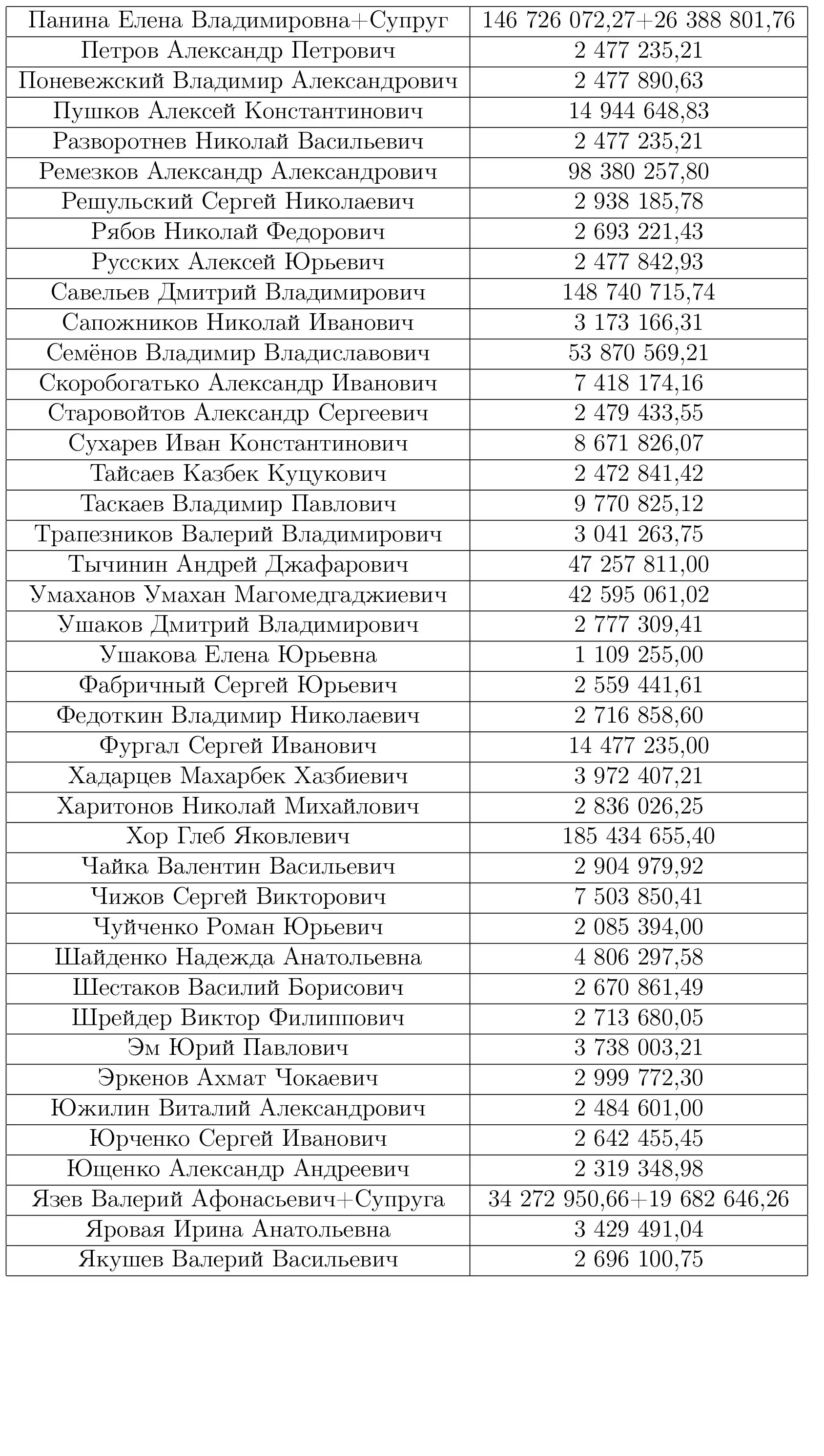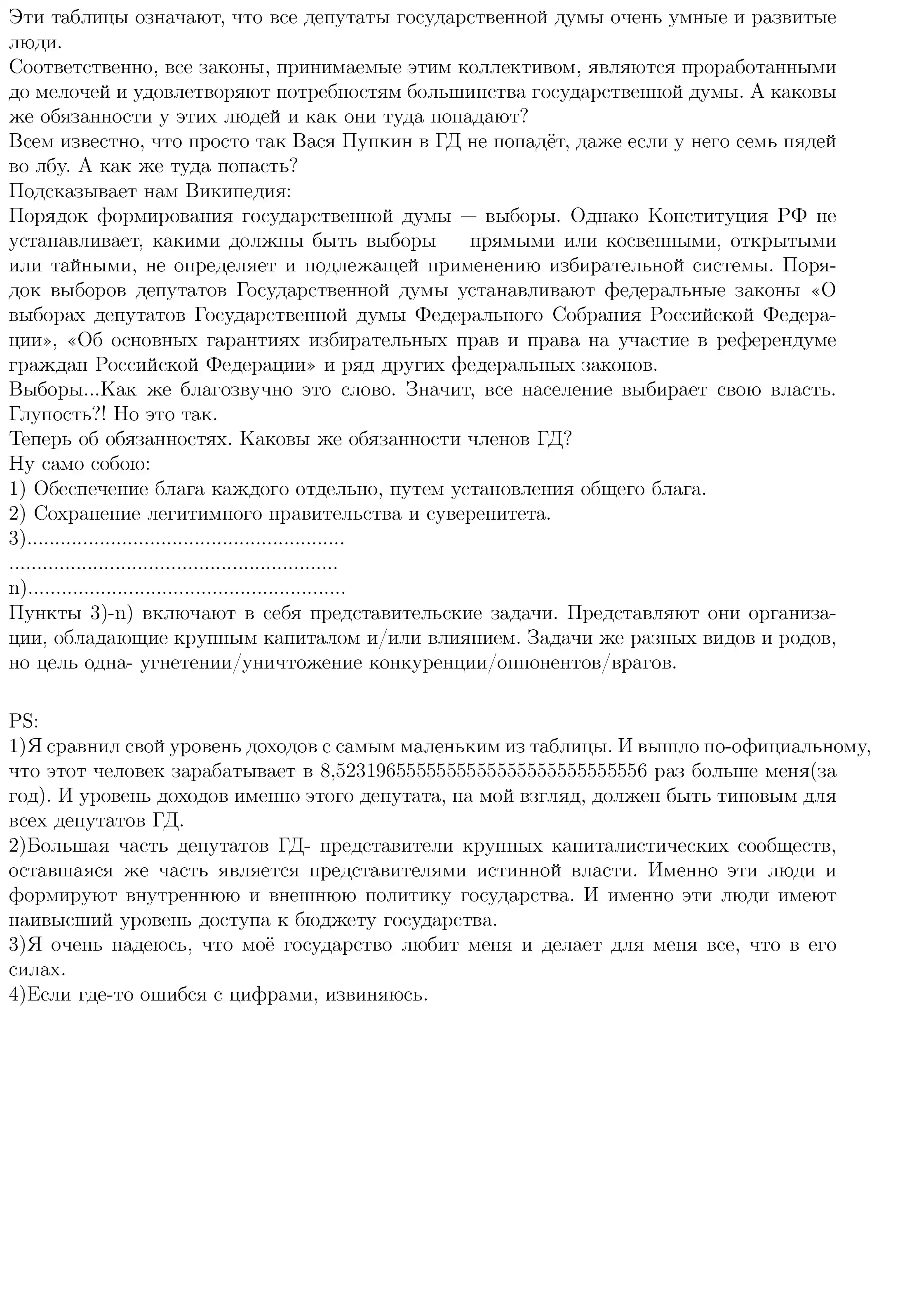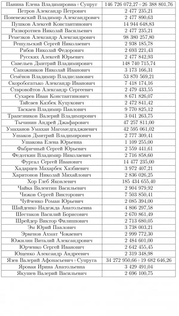 Табличка доходов некоторых депутатов государственной думы Российской Федерации.