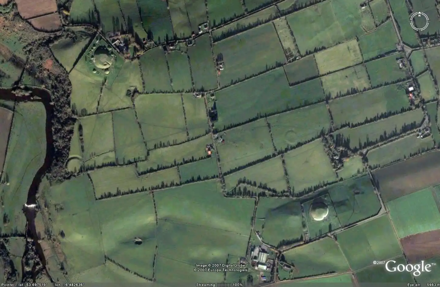 Один из величайших доисторических памятников в мире — огромная неолитическая гробница Ньюгранж (по-ирландски Si An Bhru, что, вероятно, означает «волшебное жилище») — был построен примерно 5100 лет назад. Он на 600 лет старше Великих пирамид в Гизе и на 1000 лет древнее трилитов Стоунхенджа. Гробница имеет округлую форму и в диаметре составляет около 264 футов. Сооружение занимает территорию более акра. Курган, насыпанный из чередующихся слоев мелких камней и земли, окружен 97 большими камнями, которые обычно называют «бордюрными».