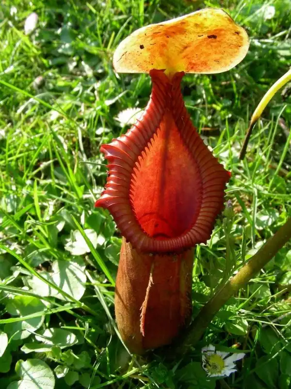 Иногда в западни-кувшины попадает и более крупная добыча, как грызуны, жабы и даже мелкие птицы. Кувшинчики окрашены в яркие цвета: красные, молочно-белые и расцвечены пятнистым рисунком, достигают 15-20, а иногда и 50 см в длину, количество скапливающегося фермента может доходить до 1-2 литров.