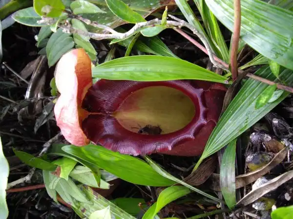 Интересно, что непентесы порой называют «охотничьими чашками», поскольку содержащуюся в них жидкость можно пить: сверху в кувшинчике чистая вода. Конечно, где-то внизу находятся непереваренные твердые остатки «обедов» растения. Но при известной осторожности до них не добраться, и практически каждый кувшинчик содержит глоток-другой, а то и много больше воды.