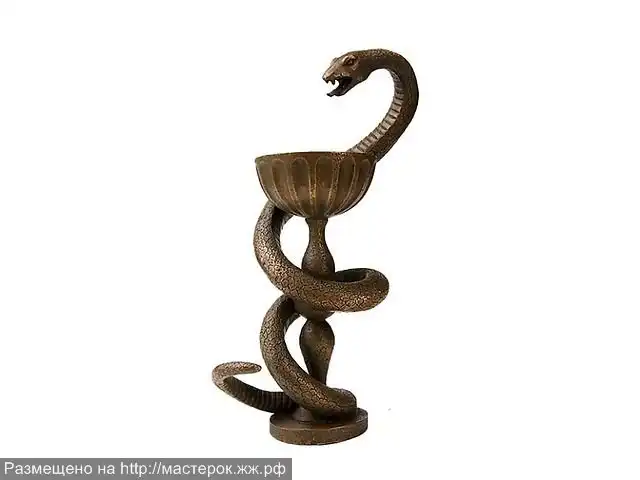 Первые изображения чаши со змеей относятся к 800—600 гг. до н. э. При этом вначале змея и чаша фигурировали раздельно и были атрибутами дочери Эскулапа, богини здоровья Гигеи, которая обычно изображалась со змеей в одной руке и с чашей в другой. Точного и узаконенного символа медицины в виде изображения змеи, обвивающейся вокруг чаши или изображенной рядом с ней, ни в древние времена, ни много позже не было. По данным академика Е. Н. Павловского, такое появилось лишь в XVI веке, благодаря знаменитому врачу Парацельсу, впервые предложившему подобное сочетание взамен традиционного на то время кадуцея.