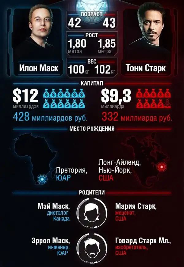 Тони Старк из киноадаптации основан на Илоне Максе, это говорит хоты бы то, что он появлялся как камео в второй части фильма.