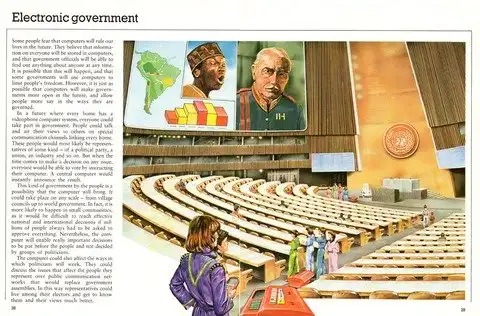 Прозрачность будет обязательна; тот, кто захочет скрыть информацию о своем имуществе, нравах, состоянии здоровья или уровне образования будет a priori подозрительным. Увеличение продолжительности жизни даст власть самым пожилым, которые решат взвалить её на себя. Государства уступят дорогу предприятиям и городам.