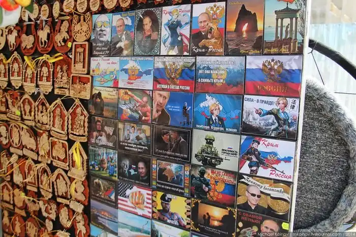 Новые тенденции и в сувенирных лавках. Огромное количество магнитиков с Путиным, Крымом-Россией, всяческими Интернет-мемами. Говорят, что пользуется большим спросом.