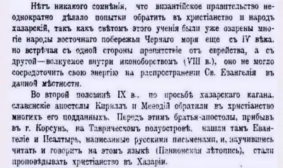 Эти цифры академик привёл для 14 — 15 вв., когда уже, по повествованиям церкви, она служила, чуть ли не кормчим для многомиллионного русского народа. Интересно было бы посмотреть на загруженного, одного единственного митрополита, который вместе с совершенно ничтожной кучкой грамотных дьяконов и монахов обслуживал почтовые нужды многомиллионного русского народа из нескольких десятков тысяч русских деревень. Кроме этого, этот митрополит и К° должны были обладать многими поистине чудесными качествами: молниеносной скоростью письма и перемещения в пространстве и времени, умением одновременно находиться сразу в тысячах мест и так далее.