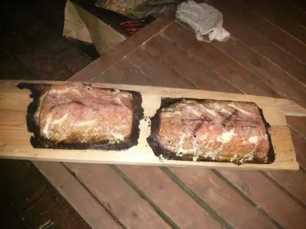 Для приготовления нам нужно 2 килограмма форели (обязательно со шкурой) и 2 специальные дощечки , изготовленные из экологически чистого канадского кедра (именно кедра - он даёт неповторимый аромат дыма и не выделяет никаких смол).