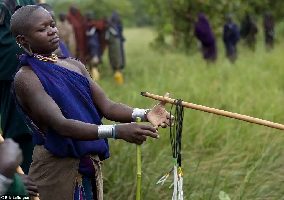 По окончании боя победитель протягивает свою палку в сторону понравившейся девушки, и если она повесит свое ожерелье на его копьё, это значит, что она счастлива стать частью его жизни.
