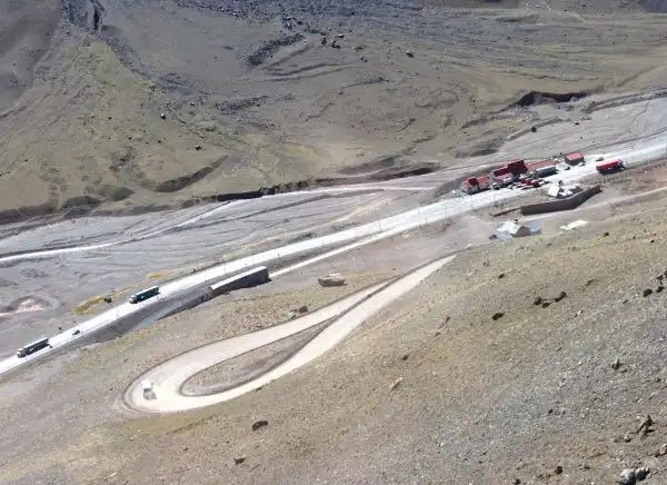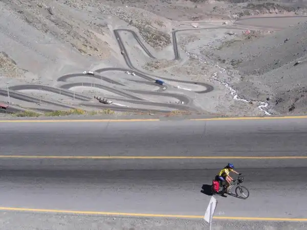 Дорога начинается на чилийской стороне с очень крутого подъема, приблизительно в 50 км от города Лос-Андес и в 70 км к северу от Сантьяго. Путешественникам здесь придется испытать нечто сродни американским горкам. Первые 20 поворотов растянулись более чем на 4 км, с изменением высот от 2,275 до 2,550 метров, после чего дорога поднимается к высоте 2,650 метров. Следующие 9 американских горок поднимут Вас до высоты 2,800 метров. Отсюда нужно проехать еще 5 км к чилийской границе и затем еще два километра к началу старой дороги, ведущей к вершине.
