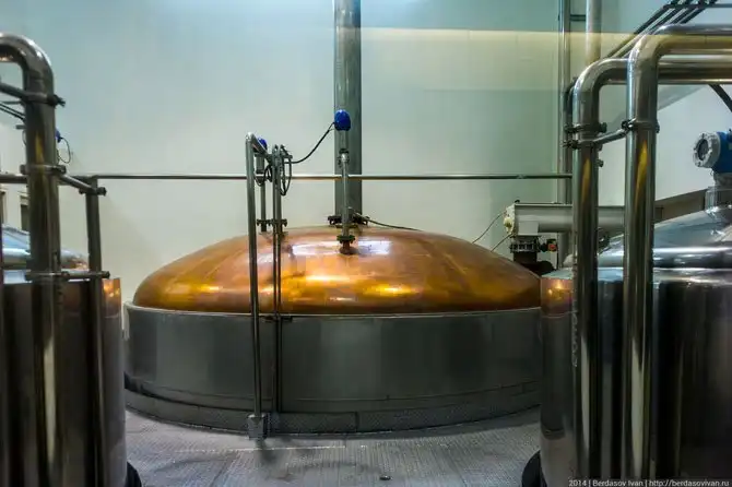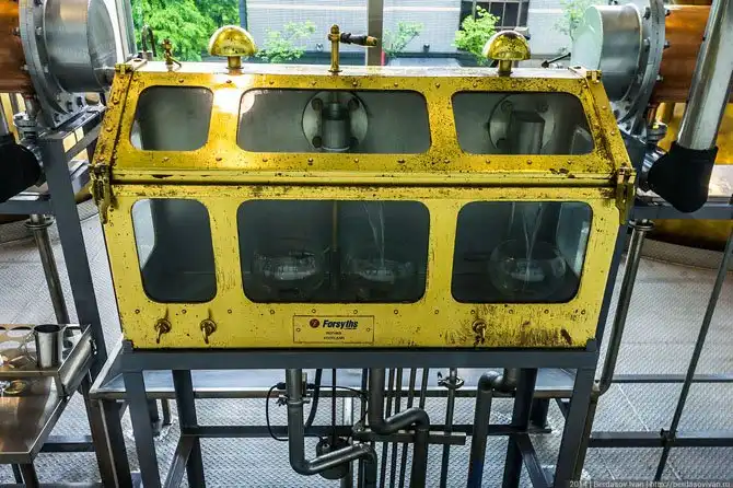 Пивная жидкость отправляется в перегоночные аппараты, где из 8%-жидкости дистиллируется в 40-градусный виски