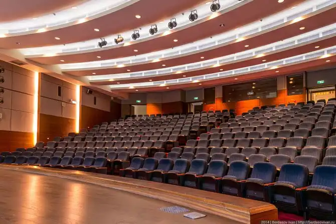 В здании есть несколько кинозалов для показа презентаций и переговорные комнаты