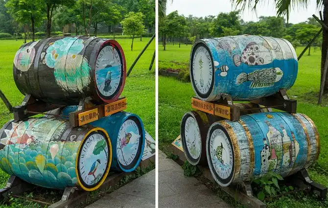 Дорогу от инфоцентра к непосредственно производственному цеху украшают бочки, разукрашенные известными тайваньскими художниками