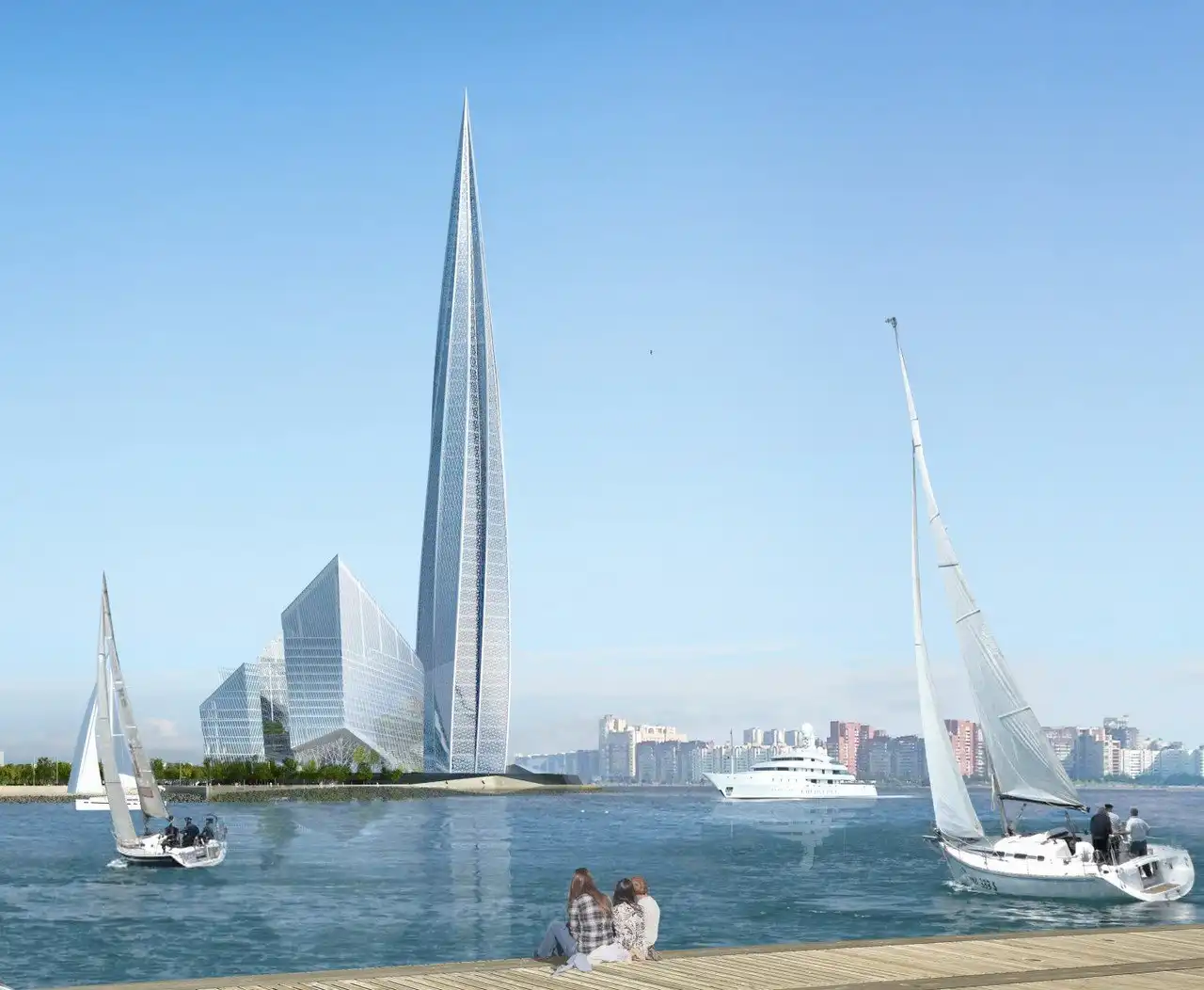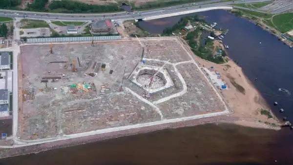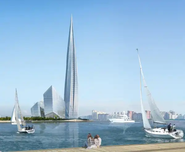 В итоге небоскреб с новым названием «Лахта-центр» получил площадку между Приморским шоссе и побережьем Финского залива, в девяти километрах от границ исторического центра города. Градозащитники были возмущены и этим проектом, раскритиковав его планировку, и попросили губернатора снизить высоту башни. Но власти города решили оставить все как есть. Сейчас башню строит дубайский подрядчик Arabtec, который в числе прочих возводил самое высокое здание в мире — Burj Khalifa.