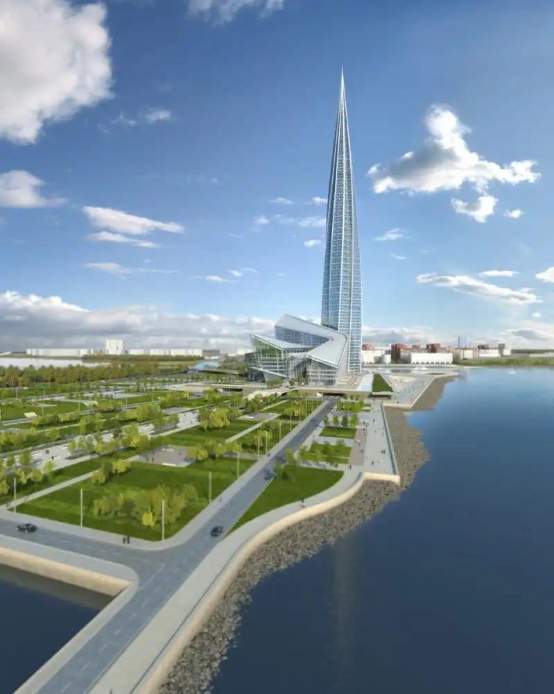 ОАО «Газпром» намерен создать 8-километровую пешеходную набережную на берегу Финского залива, объединив собственную рекреационную зону с южной стороны небоскреба, в которой разместится ее штаб-квартира.