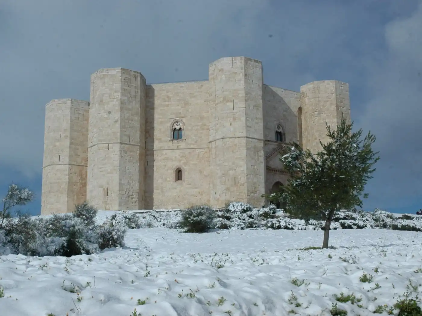 В качестве места для будущего строительства очередного замка Фридрих II выбирает Апулию, регион, входящий в тот период в состав Сицилийского Королевства (ныне регион провинции Бари на юге Италии), где он, собственно, вырос и прожил все свое детство и юность. Согласно бытующему преданию, Castel del Monte (от итал. «замок на горе» или «замок горы») был построен на месте руин покинутого монастыря Святой Марии, а точнее, на небольшом возвышении в виде холма, расположенного посреди безлюдной равнинной местности (в 16 км от города Андрия), позже получившей название Terra di Bari. Отсюда и происхождение первоначального названия замка Сastrum Santa Maria de Monte, которое сохранялось за ним на протяжении долгого времени.