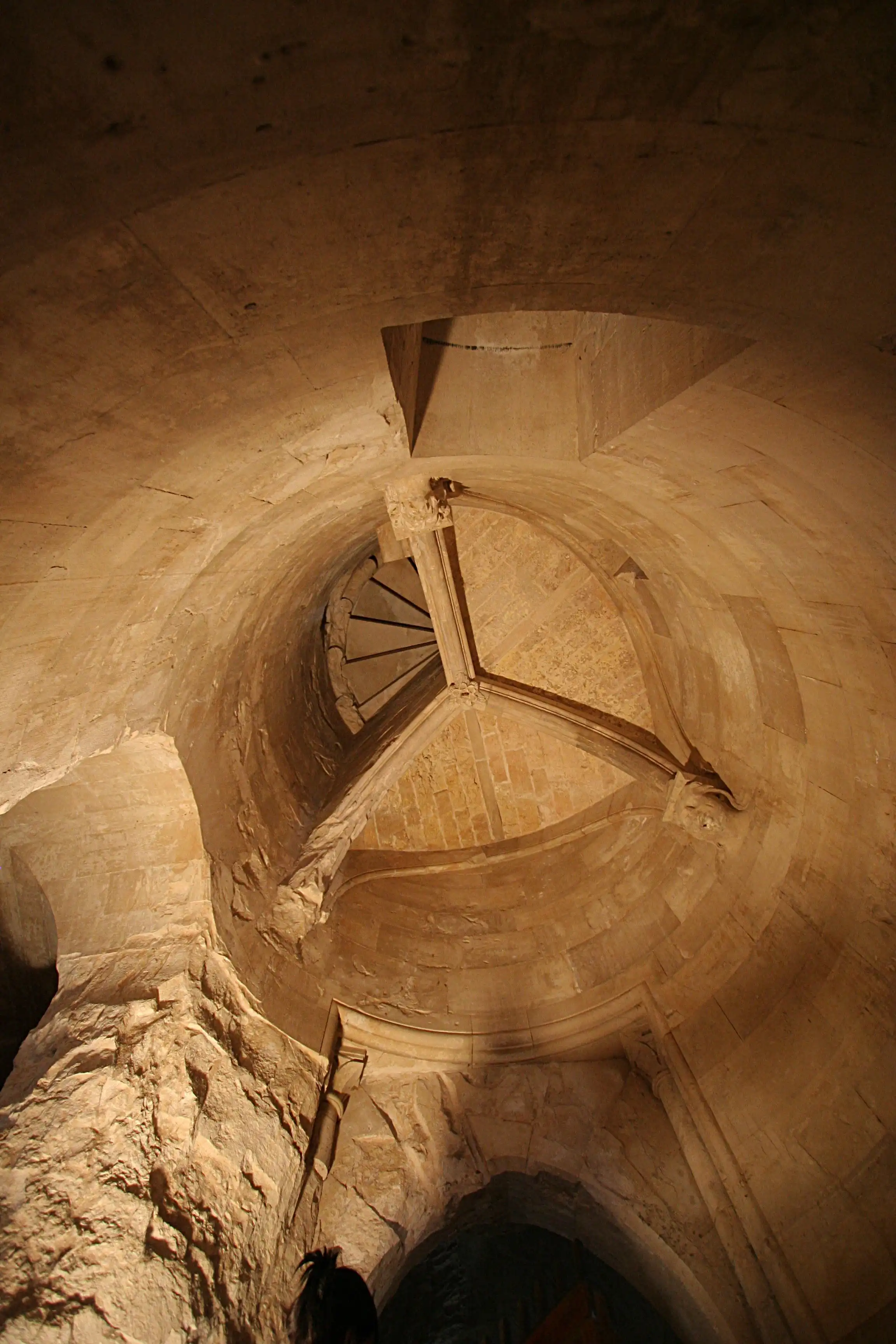 Это обеспечивает защитникам замков более выгодное положение, так как атакующим солдатам приходится подниматься по лестнице и при этом вести бой в неудобной позиции. А дело все в том, что солдаты, идущие на штурм замка, лишаются возможности наносить наиболее сильные удары своим основным оружием ― мечами, ведь для этого требуется размахнуться справа налево, в то время как солдаты, защищающие замок, благодаря закрученности лестницы и более высокому на ней положению будут постоянно находиться несколько правее. Так что нестандартное (против часовой стрелки) направление винтовых лестниц Кастель-дель-Монте получило бы хоть какое-то оправдание, только если бы замок осаждали войска, состоящие исключительно из левшей. Или, что более очевидно, Фридрих II таким способом лишний раз подчеркнул необоронное предназначение замка.