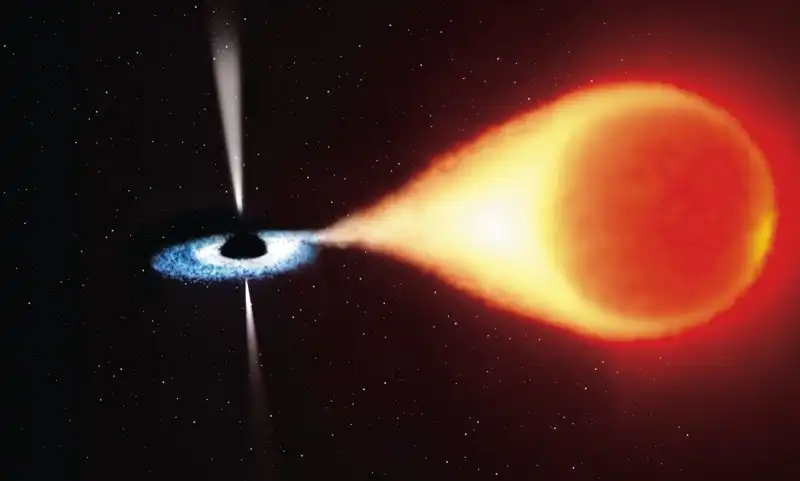 В двойной системе с черной дырой в ее составе вещество «живой» звезды будет неизбежно «перетекать» в направлении черной дыры. И закручиваться высасываемое черной дырой вещество при падении в черную дыру будет по спирали, исчезая при пересечении радиуса Шварцшильда. При подходе к роковой границе, однако, засасываемое в воронку черной дыры вещество будет неизбежно уплотняться и разогреваться в силу учащения соударений между поглощаемыми дырой частицами, пока не разогреется до энергий излучения волн в рентгеновском диапазоне спектра электромагнитного излучения. Астрономы могут измерить периодичность изменения интенсивности рентгеновского излучения такого рода и вычислить, сопоставив ее с другими доступными данными, примерную массу объекта, «перетягивающего» на себя материю. Если масса объекта превышает предел Чандрасекара (1,4 массы Солнца), этот объект не может являться белым карликом, в которого суждено выродиться нашему светилу. В большинстве выявленных случаев наблюдения подобных двойных рентгеновских звезд массивным объектом является нейтронная звезда. Однако насчитано уже более десятка случаев, когда единственным разумным объяснением является присутствие в двойной звездной системе черной дыры.