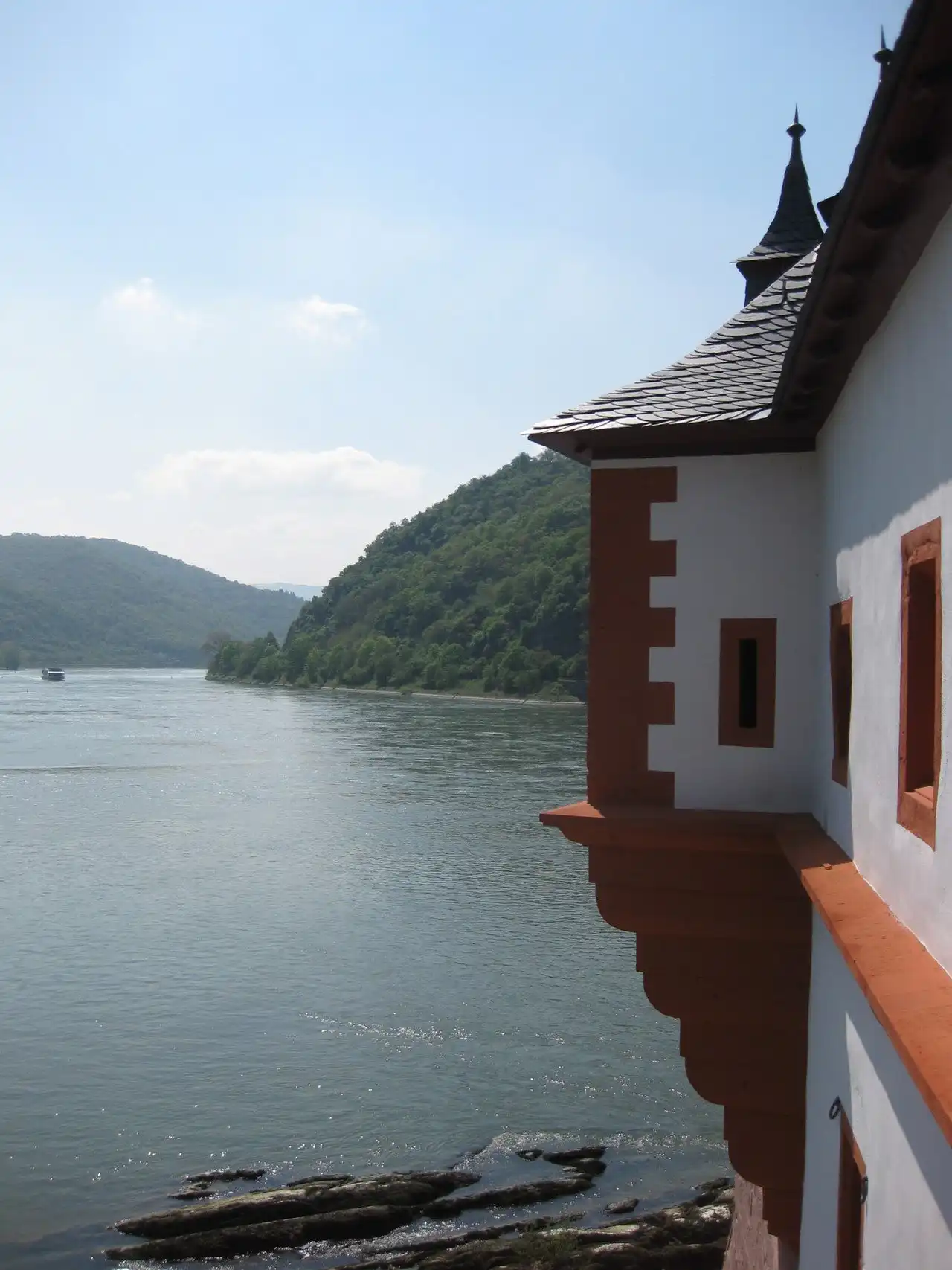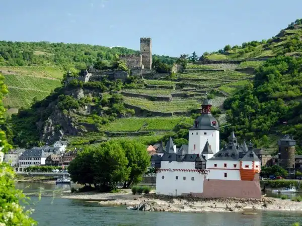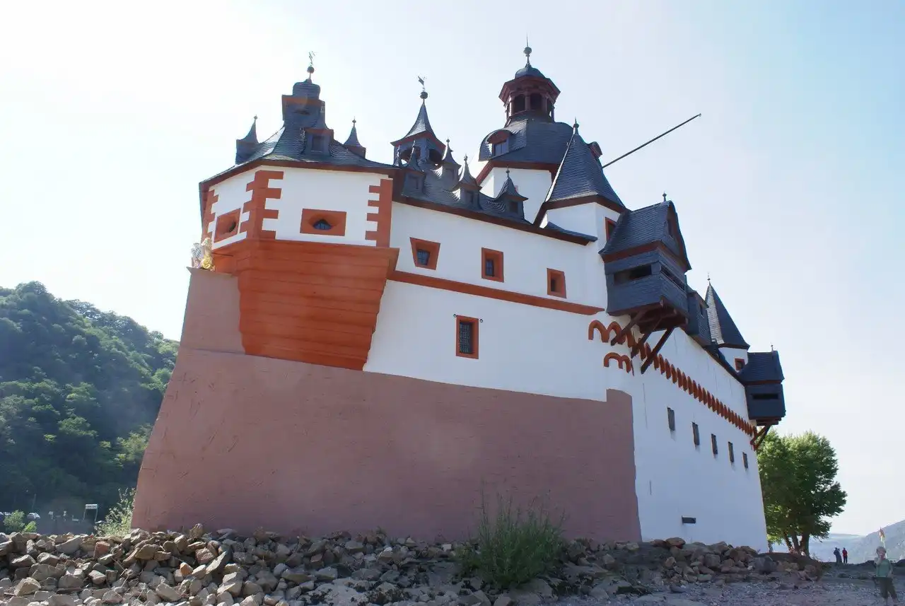 Замок расположенный прямо посреди Рейна на маленьком островке Falkenau, часто называют просто Пфальц. Сам остров находится напротив небольшого городка Кауб. Пфальцграфенштайн известен за свою необычную форму и живописное расположение.