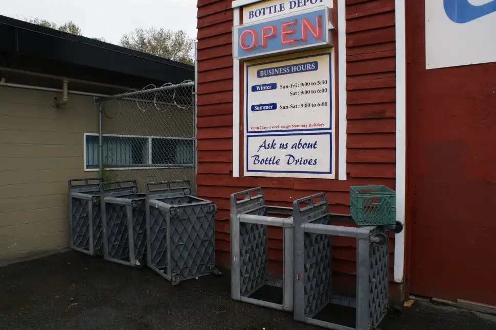 Так выглядит пункт приема стеклотары в Ванкувере. Снаружи сошел бы и за отечественный — только надпись поменяй.