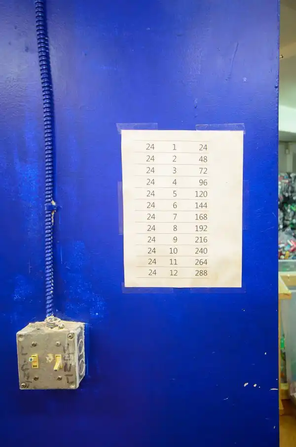 На стене – понятная инструкция по сортировке и, по совместительству, — прейскурант. Крышки снять, наклейки оставить, все пакеты — в лоток; литровое — к литровому, картонное к картонному. Все ясно