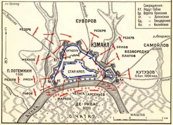 Карта действий русских войск при штурме Измаила