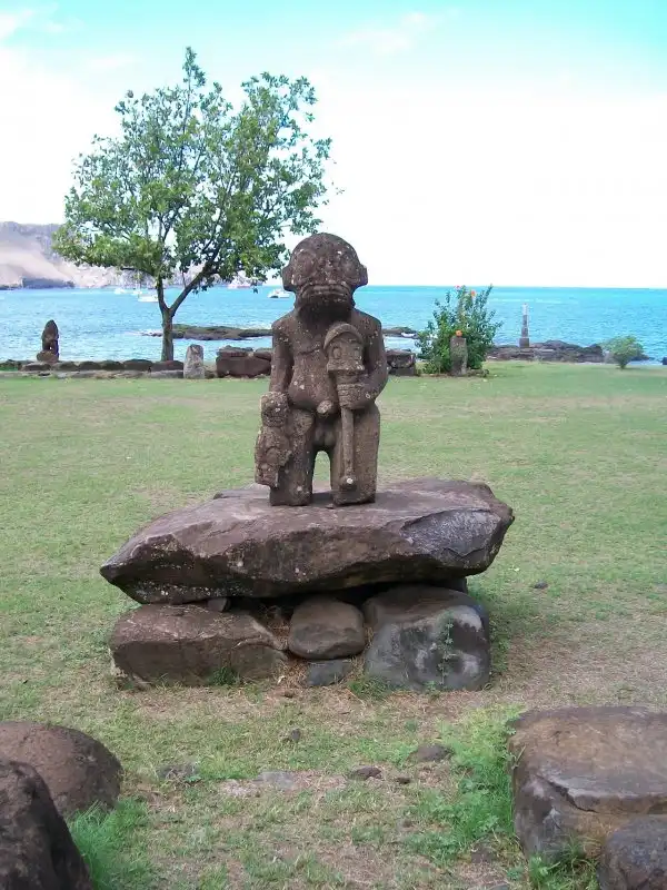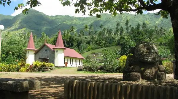 Кроме этого каждому путешественнику, прибывшему на остров Нуку-Хива, обязательно нужно познакомиться с местными достопримечательностями. Среди них собор Богоматери, который построен из разного цвета камней разнообразных форм. В соборе представлены статуи, над изготовлением которых трудились скульпторы, проживающие на разных островах Маркизии. Во время экскурсии по острову вам покажут самую маленькую католическую церковь в местечке Анахо, отвезут в красивейшую долину Анахо, где находится водопад высотой в 350 метров. А с вершины холма Муаке можно увидеть сразу весь остров Нуку-Хива и статую Девы Марии, стоящую на вершине пика, который возвышается над заливом Хатихеу.