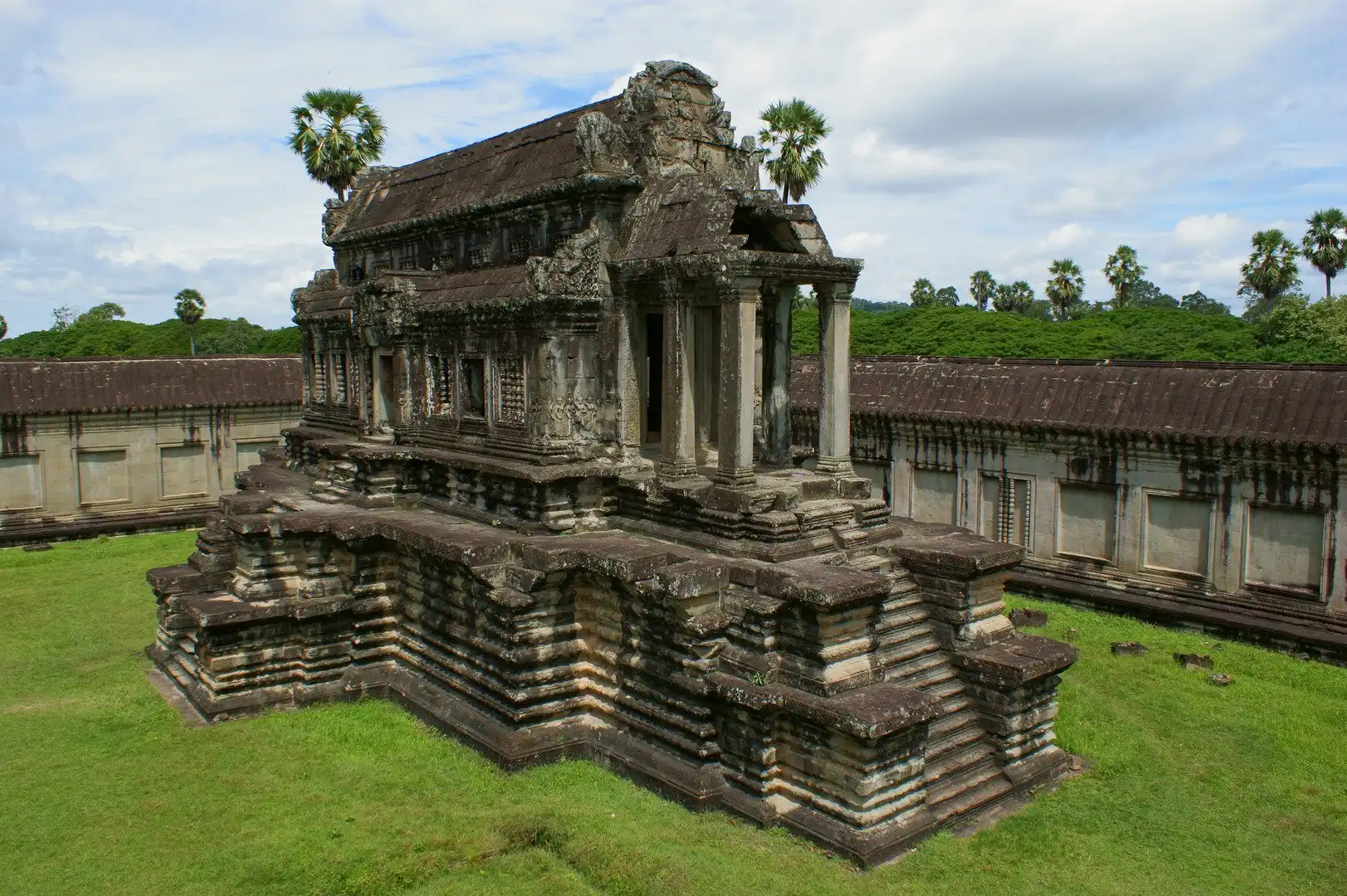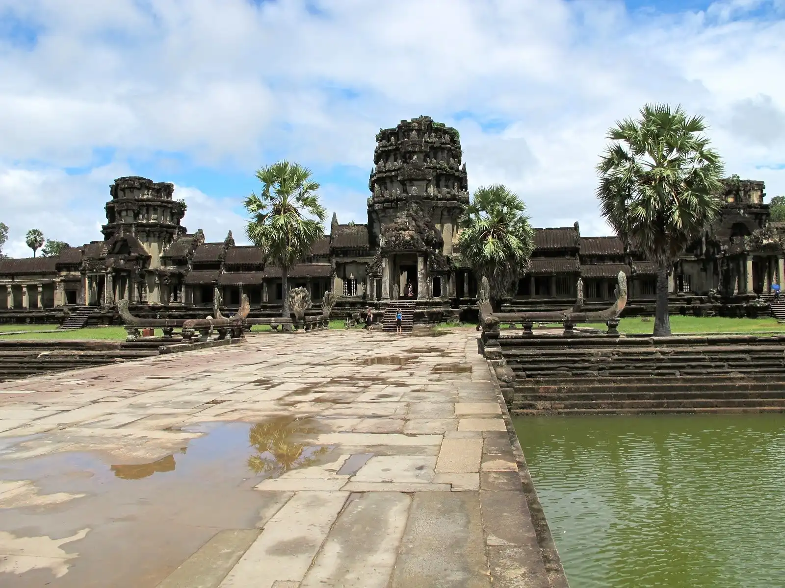 Во внутреннем дворе слева и справа находятся два небольших здания - это библиотеки. Они, как и все строения Ангкор Вата, имеют форму креста. За библиотеками - два бассейна (65×50 метров). Левый всегда заполнен дождевой водой, а правый, обычно, сух. Стоя перед левым бассейном можно хорошо разглядеть 10 башен Ангкора (пять из них отражаются в воде).