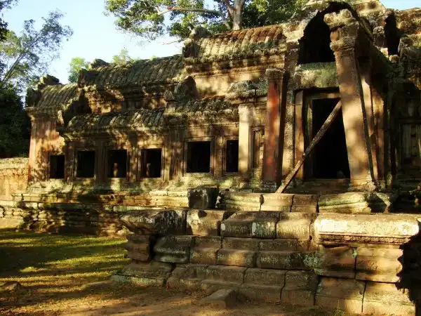 Как мы и говорили ранее, прогулка пешком не самый удобный вариант путешествия и на то есть много оснований. Во-первых, Ангкор Том находится в 8 км от Сием Рипа. Во-вторых, немало живописных храмов находятся на расстоянии 15-10 км от Ангкор Тома. Немаловажно также учесть и тот факт, что после 11 часов утра солнце пребывает в зените и длительные пешие прогулки могут оказаться очень серьезной нагрузкой на организм. Однако если описанные выше факты не отпугнули вас вы решились на прогулку пешком, то откройте для себя дорогу, пролегающую за стеной Ангкор Тома. Этот маршрут откроет вам не только малоизвестные храмы, спрятанные в зарослях тропических деревьев, но и даст возможность насладиться пением птиц и музыкой джунглей.