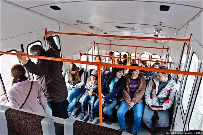 Каждый вагон вмещает до 100 человек, из которых 30 – сидячие места. Вес одного вагона без пассажиров – около 10 тонн.