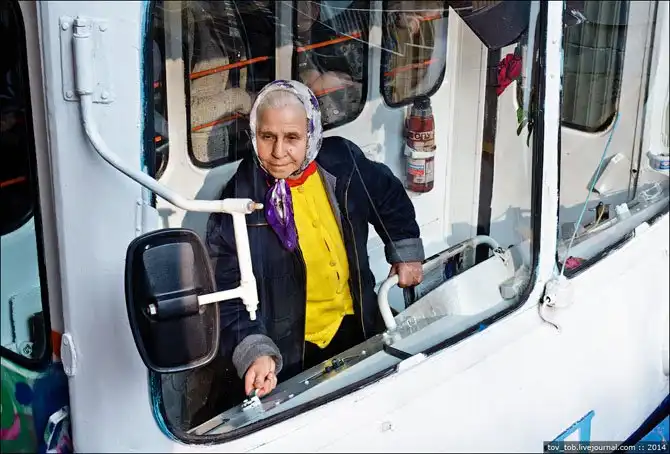 На верхней станции через круглое окошко за работой фуникулера присматривает машинист: