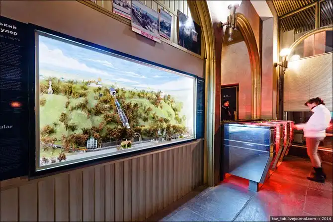 На входе верхней станции имеется небольшая диорама, показывающая историю развития фуникулера и окружающей местности.