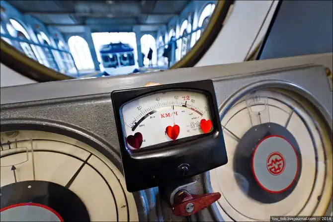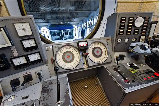 Рабочее место машиниста. Очень напоминает рабочее место машиниста подъема шахтной клети