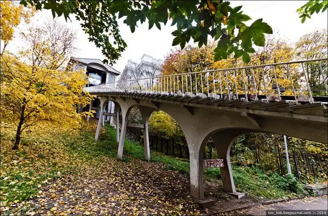 Верхняя часть трассы фуникулера расположена на железобетонной эстакаде: