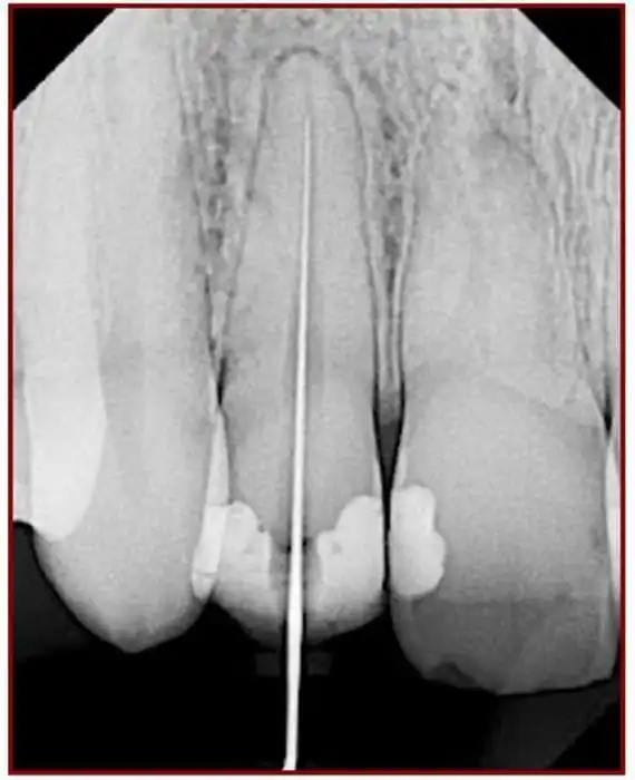 После того как \«нерв\» удалили наша первейшая задача определить какая же у канала длина. Ранее использовали рентгенологический способ — в канал засовывался файл и делался снимок, на котором было видно насколько глубоко этот файл отстоит от макушки.