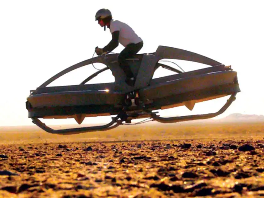 Коммерческий дизайн Aero–X объединяет канальные роторы на воздушной подушке с простотой рулевого управления мото — или квадроцикла. Это транспортное средство будет парить над землей на высоте почти 3,7 метра со скоростью 72 км/ч. Ховербайк способен выдержать вес до 140 килограмм, полного бака топлива хватает на час с лишним полета: два человека могут перемещаться по бездорожной местности. Фантастический аппарат стал возможен только потому, что Aerofex решила сложнейшие инженерные задачи, связанные с устойчивостью и управляемостью, мешавшие в создании подобных средств испокон веков.