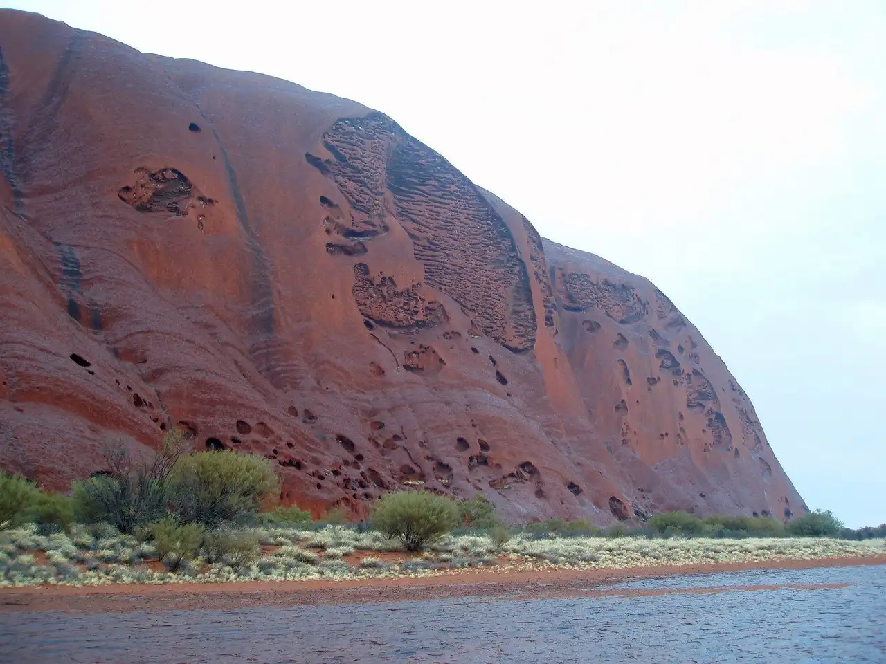Дождевые осадки, стекающие с необычной каменной поверхности Ayer Rock, создают красивое зрелище, которое зафиксировали фотографии непогоды над Национальным парком Улуру. Во время непогоды 14 октября выпало 7 см осадков. В этой местности за год выпадает 15,5 сантиметров осадков.