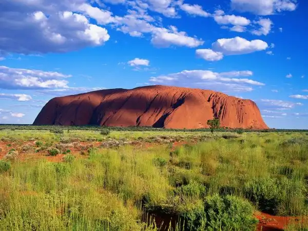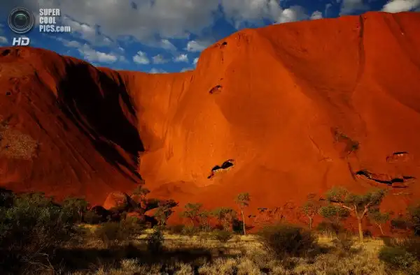 Это место является одной из главных достопримечательностей Австралии. Улуру (Uluru) – большое скальное образование из песчаника, оранжевый цвет которому придает наличие в составе оксида железа.