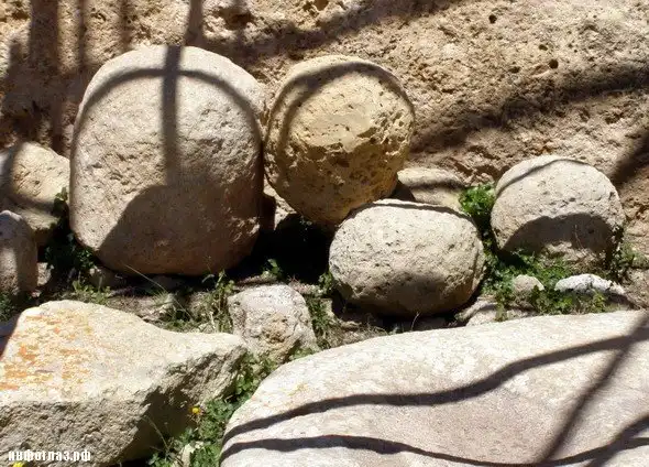 В некоторые помещения ведут овальные проемы, вырубленные прямо в плитах, отчего внутренняя часть сооружения отдаленно напоминает подводную лодку. Огромные размеры глыб, из которых сложены стены, непременно заставляют задавать себе вопрос: «Как голыми руками, без строительной техники, можно было построить подобное?! Кто и как переносил эти гигантские глыбы?» Воображение рисует циклопа, для которого подобное занятие было чем-то вроде игры в конструктор «Лего».