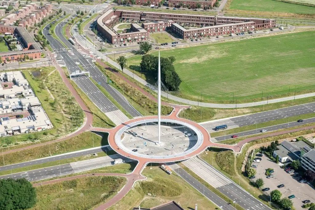 Похожий на летающую тарелку, металлический мост нависает над пересечением дорог Heerbaan/Meerenakkerweg.