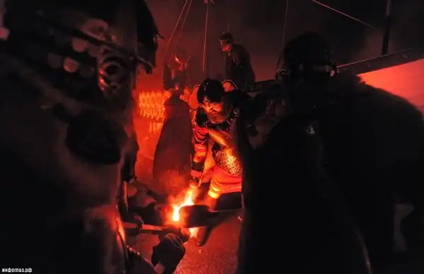 Мужчины в костюмах викингов готовятся к фестивалю Апхеллио в Леруике, Шотландия, 29 января 2013 года. (Andy Buchanan/AFP/Getty Images)
