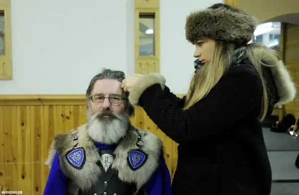 Женщина заплетает косички мужчине в костюме викинга перед фестивалем Апхеллио в Леруике, Шотландия, 29 января 2013 года. (Andy Buchanan/AFP/Getty Images)
