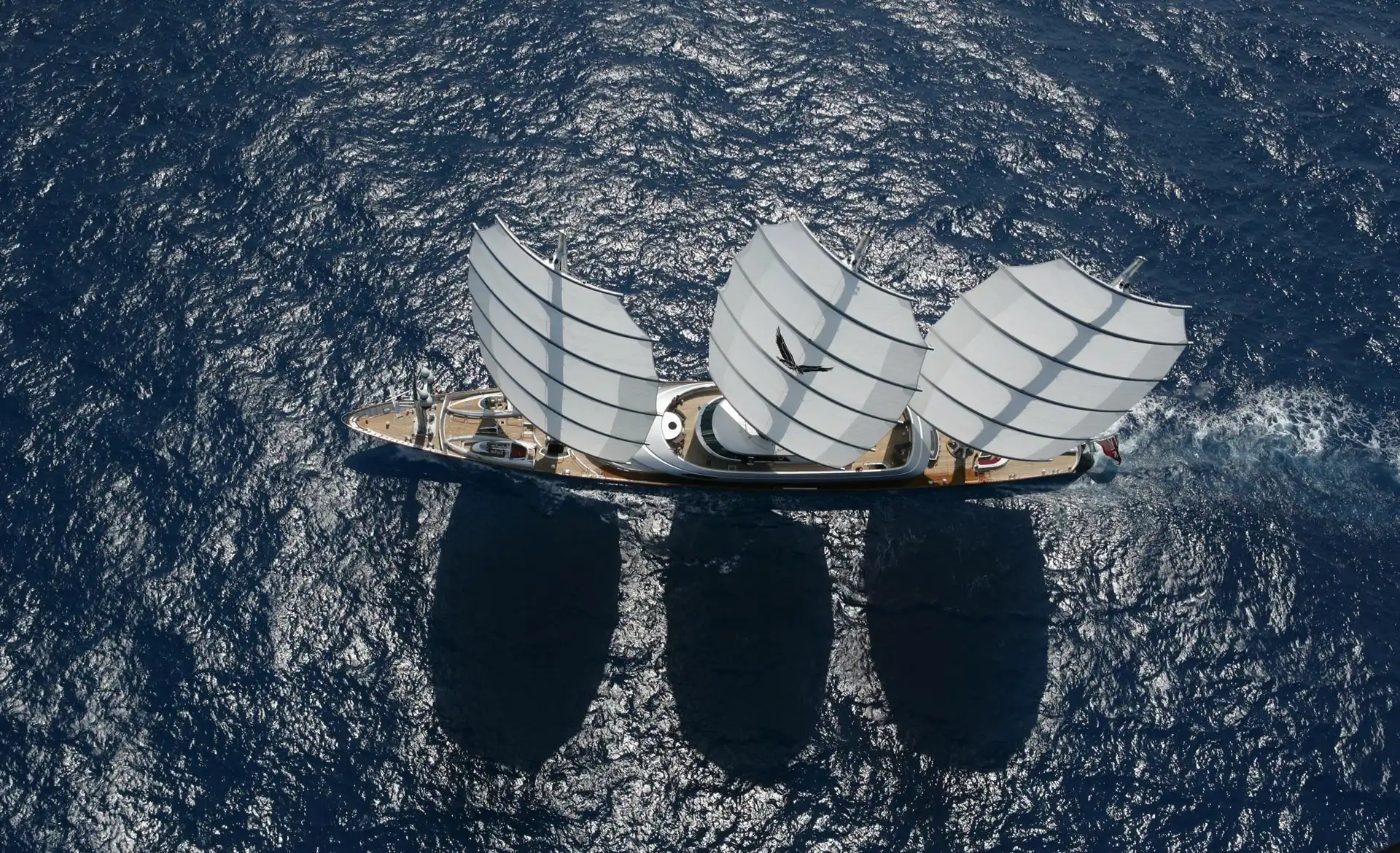 Поэтому перед архитекторами из Gerard Dijkstra & Partners стояла нелегкая задача спроектировать парусную систему, подходящую для не слишком большой яхты. И им это в полной мере удалось: с уникальным прямым вооружением Falcon Rig – три мачты из углеволокна, по пять парусов на каждой – легко управится даже немногочисленная команда; а скорость, которую способен развить Мальтийский Сокол, просто потрясает.